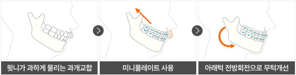 If the lower jaw is rounded, lacks volume, or is smaller compared to the upper jaw, a miniplate can be used to move the upper jaw slightly backward and upward while guiding the lower jaw forward.